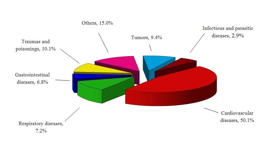 Using the methods of estimation of economic efficiency we have made calculation of the economic losses connected to cardiovascular diseases. It was shown that the economic damage from premature death rate and physical inability from CVD in our country totaled more than 14 billions soms (near 360 millions $ USA) in 2007 (2). It dictates necessity of the urgent organization of struggle against cardiovascular diseases for stop the deterioration of health parameters of Kyrgyz population and prevention of serious social consequences with negative economic effect.